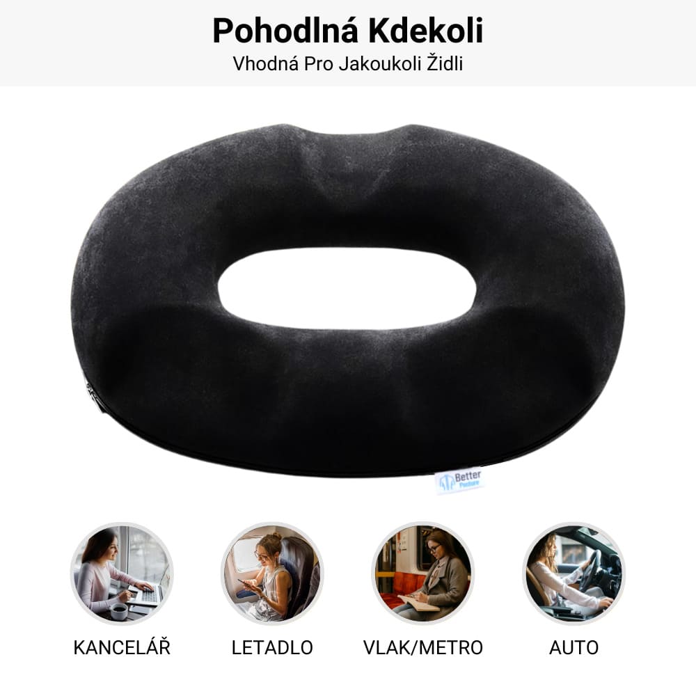 1x Ortopedický podsedák ve tvaru kruhu na hemoroidy z paměťové pěny Better Posture Pro